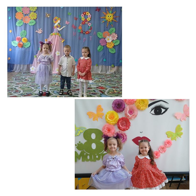 В преддверии празднования Международного женского дня особых поздравлений заслужили любимые мамочки, ведь для наших малышей - это самый родной человек на земле. Поэтому, ребята с особой любовью и нежностью готовились к этому празднику. Дети старательно делали подарки для своих мам, разучили песенку и стихи, порадовали своих мамочек чудесным танцем с цветочками. И это лучшие подарки, которые мамы могут получить на праздник от своих деток. Наши малыши подарили радость и хорошее настроение.