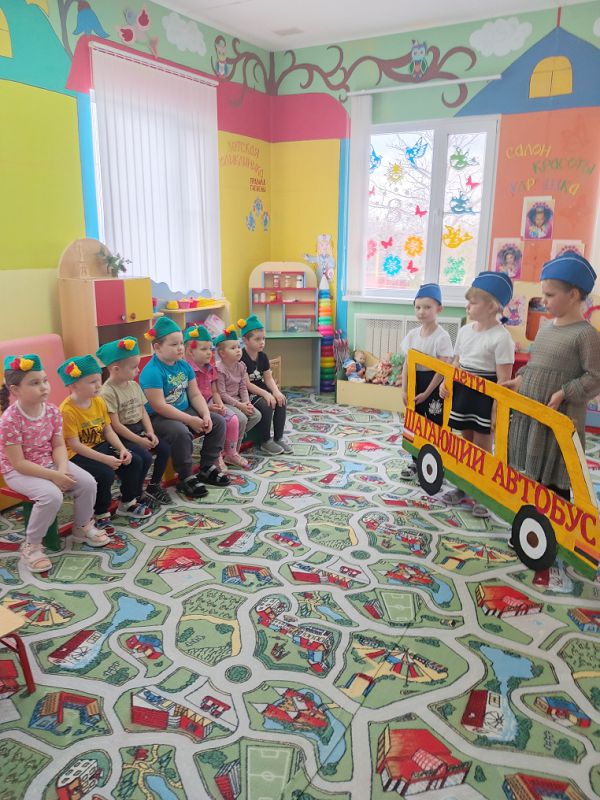 Маршрут был от детского сада к школе. Около школы ребят встретил отряд ЮИД"Клаксон". Вместе дети закрепили знания о дорожных знаках и правилах поведения вблизи проезжей части. "Шагающий автобус" помог детям не только повторить теорию, но и применить знания на практике.