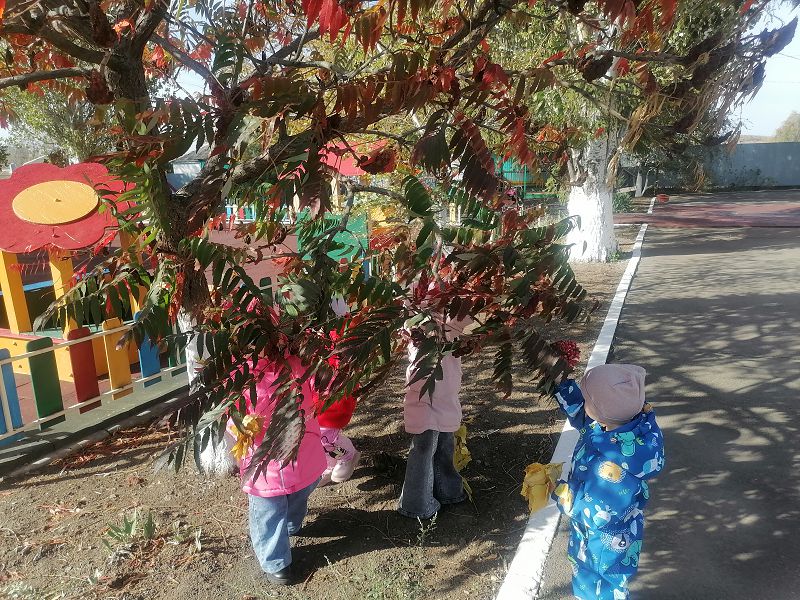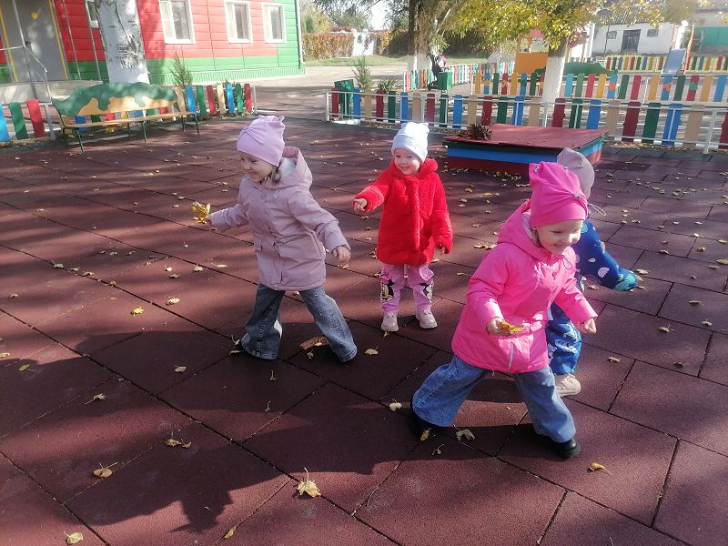В осенний период прогулки способствуют обогащению знаний детей об изменениях в природе, наблюдению за красивыми листьями.