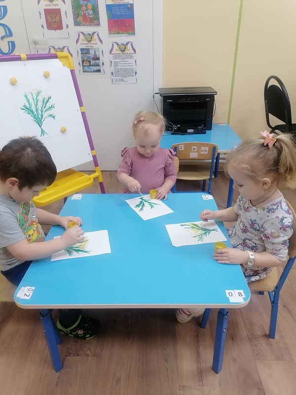 Весна - это всегда пора света, солнца и тепла. А ветка мимозы, принесённая в подарок - это множество маленьких солнышек в вашем доме. В младшей группе прошло занятие по рисованию "Ветка мимозы". ?Рисование с использованием нетрадиционных техник изображения (ватными палочками) не утомляет малышей, у них сохраняется высокая активность, работоспособность на протяжении всего занятия.