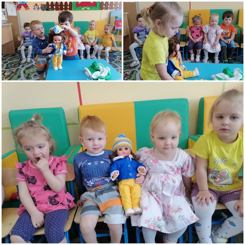 В младшей разновозрастной группе прошло занятие "Весна. Оденем куклу Катю на прогулку".