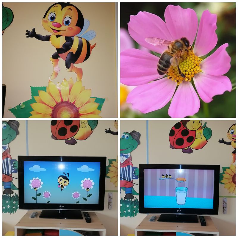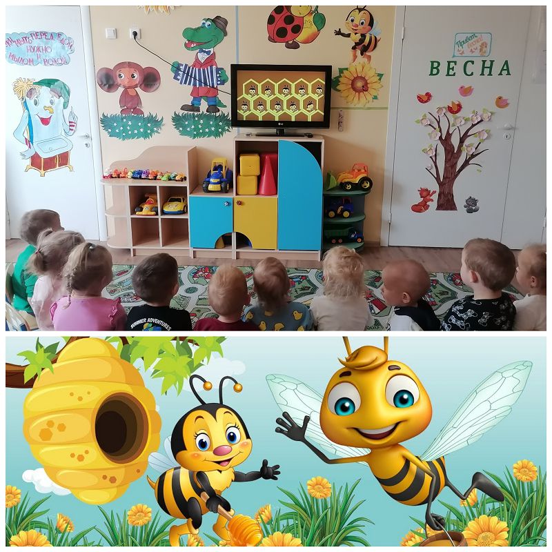 20 мая отмечается Всемирный День пчёл. В младшей разновозрастной группе прошёл тематический день, посвящённый данному празднику. Утро в группе началось с беседы о пчёлках. Дети рассмотрели строение насекомых, узнали, как пчёлы делают мед и где живут. А также выяснили, что подходить близко к пчёлам нельзя. Затем с интересом посмотрели мультфильм о пчёлах.