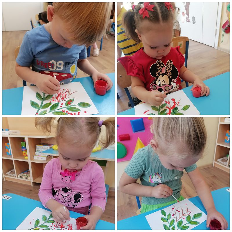 Цель: Расширять представления о деревьях. Познакомить детей с рябиной. Развивать навыки в нетрадиционном рисовании. Воспитывать желание видеть красоту родной природы.
