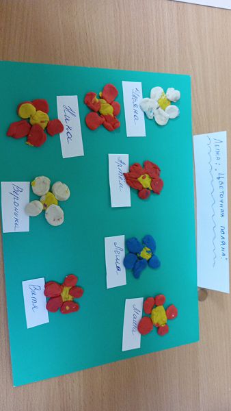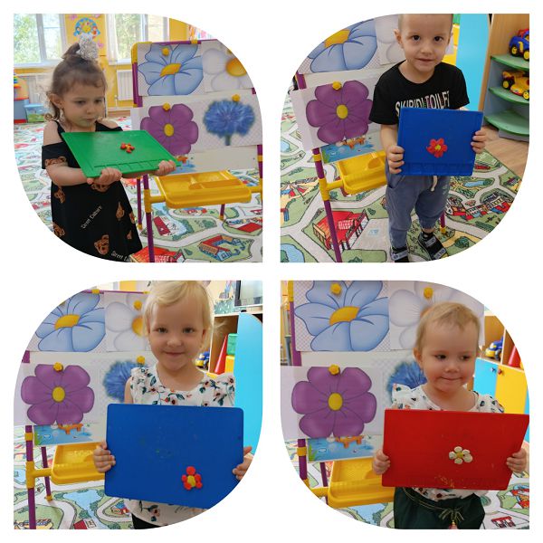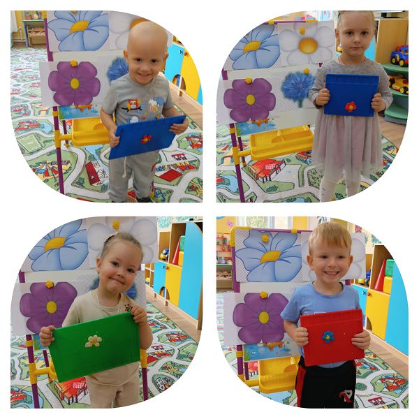Ребята с удовольствием рассматривали картинки с изображением цветов, отгадывали загадки. Затем вместе сделали физминутку"Цветок". Все дети приступили к лепке своего цветка, который поток прикрепили на поляну.