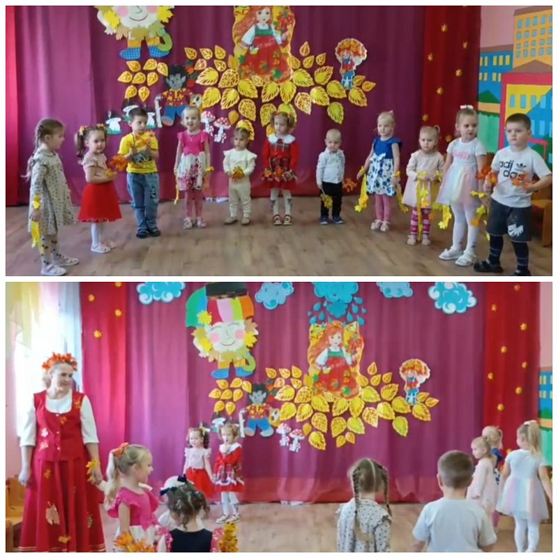24 октября в младшей группе прошло осеннее развлечение. К ребятам в гости приходила красавица - Осень с друзьями ёжиком и зайкой. Дети с удовольствием танцевали с листочками и погремушками, пели осенние песенки и играли. Праздник получился весёлым и ярким, подарил нашим детям много положительных эмоций.