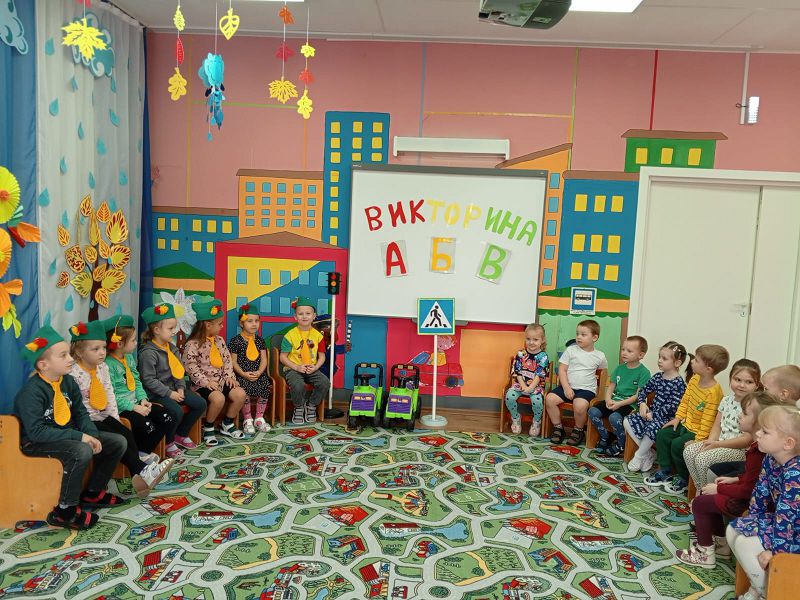 В детском саду"Буратино"прошла познавательно-обучающая викторина"АБВ" по правилам дорожного движения. Цели и задачи: -привлечение дошкольников к участию в пропаганде ПДД на улицах и дорогах среди сверстников; -закрепление знания детей, безопасному поведению на дорогах.