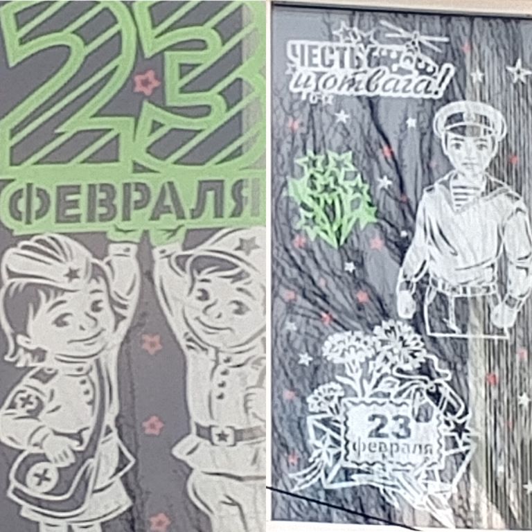 Уже стало традицией оформлять окна. К Дню Защитника Отечества- Подобное оформление не только создаёт торжественную праздничную атмосферу, но и воспитывает чувство гордости и патриотизма и уважения к военной профессии.