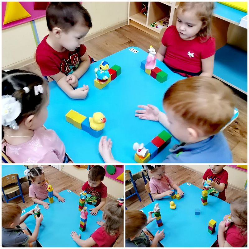 Цель: Сооружение элементарной постройки по образцу, желание строить самостоятельно башню и преобразовывать её в поезд.